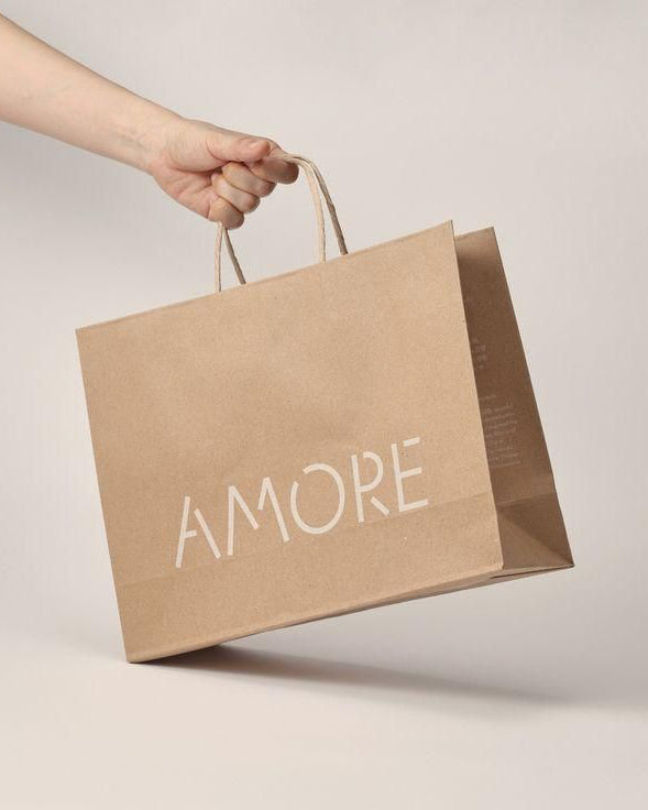 This kraft paper bag features a durable build and a comfortable handle for easy carrying. It supports customization, making it a practical and personalized packaging option for your business.